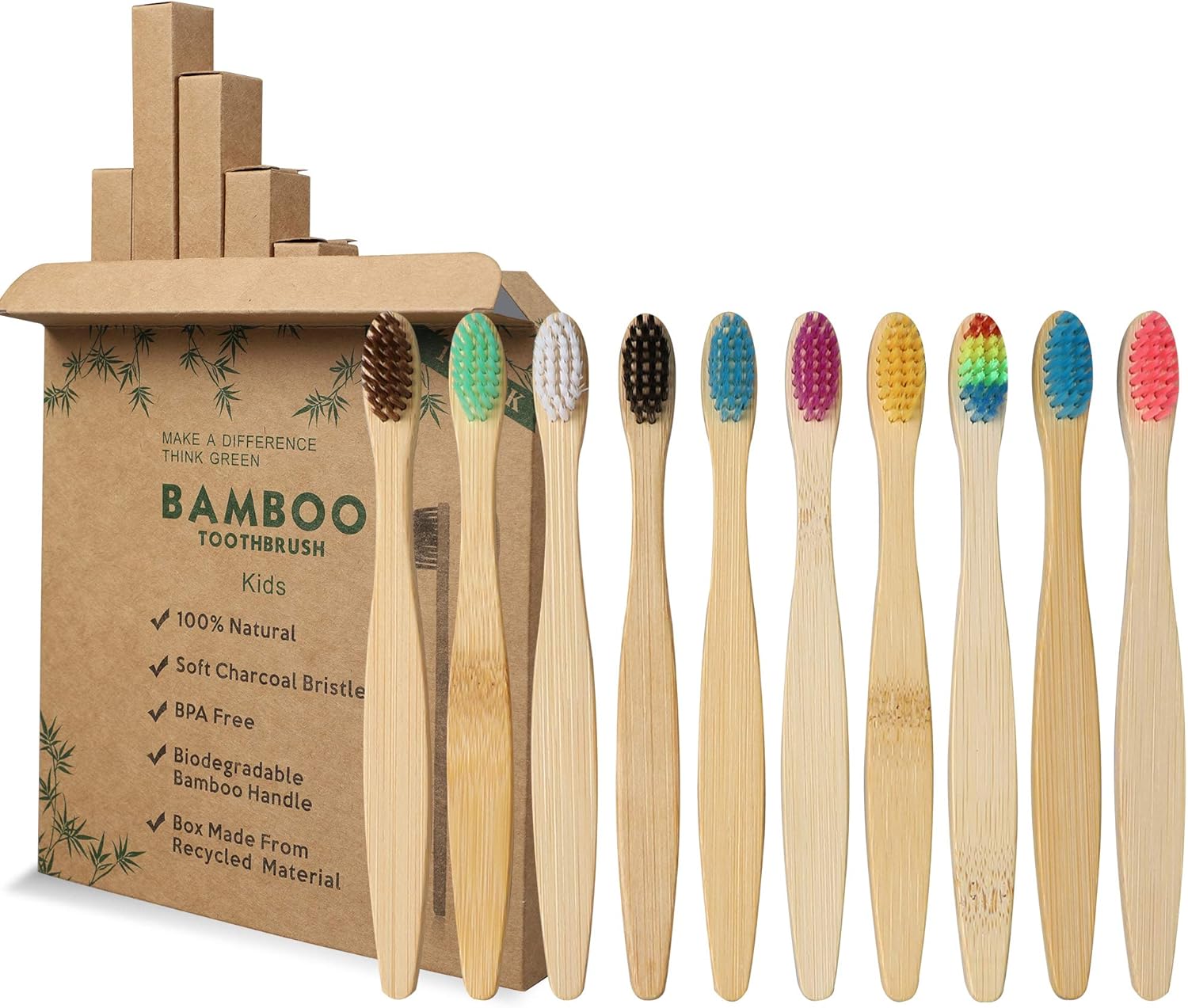 Cepillos de Dientes Bambú para Niños | Pack 10 Colores con Cerdas Suaves y Biodegradables