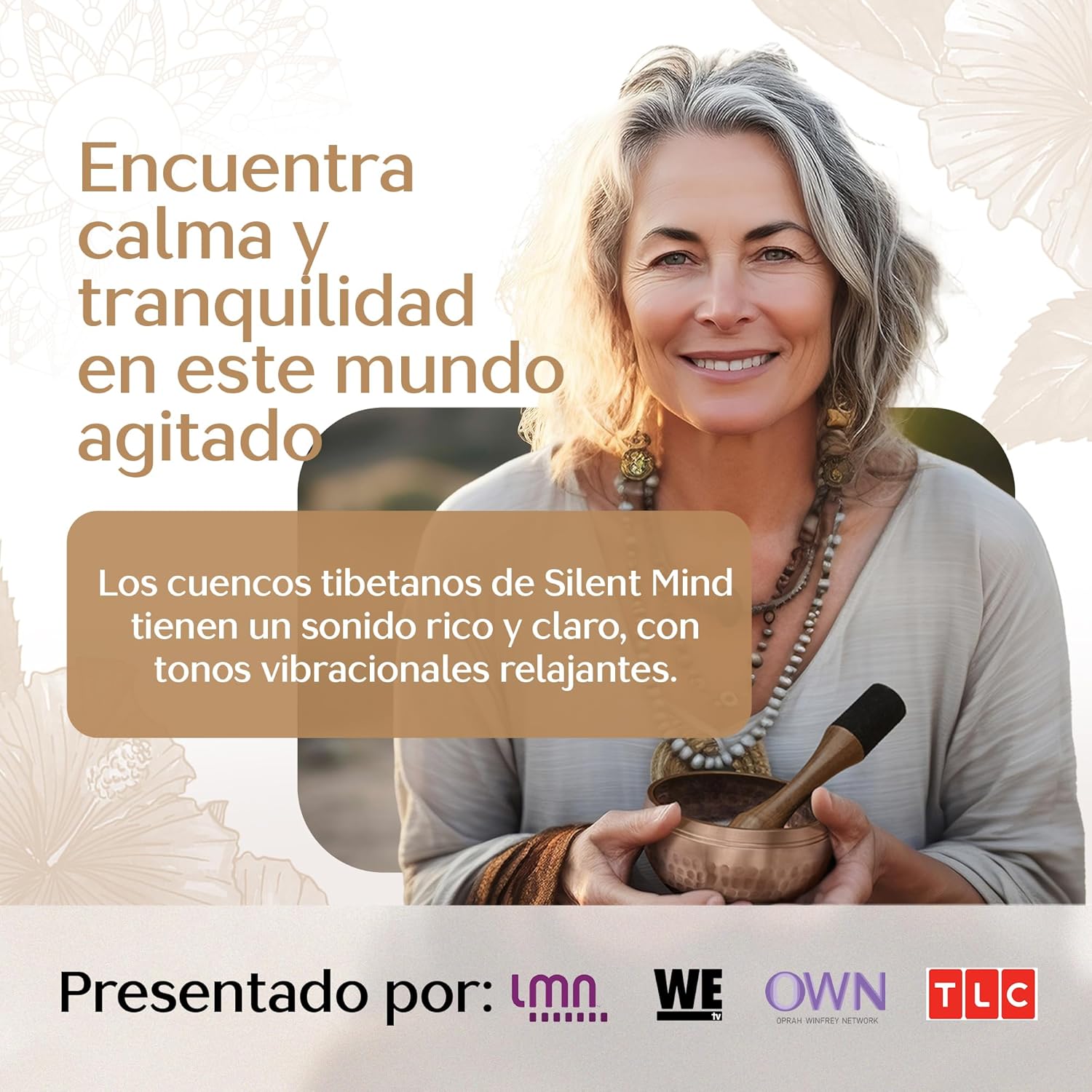 Silent Mind ~ Juego De Cuencos Tibetanos ~ Diseño Negro Brillante ~ Con Mazo De Superficie Doble Y Cojín De Seda ~ Promueve La Paz, La Curación De Chakras Y La Atención Plena ~